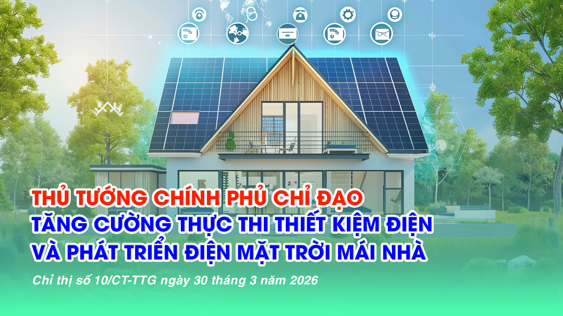 Thủ tướng Chính phủ Phạm Minh Chính vừa ký ban hành Chỉ thị số 10/CT-TTg ngày 30 tháng 3 năm 2026 về việc tăng cường thực thi tiết kiệm điện và phát triển điện mặt trời mái nhà