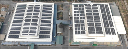 Hệ thống điện mặt trời áp mái đã được lắp đặt tại nhà máy.