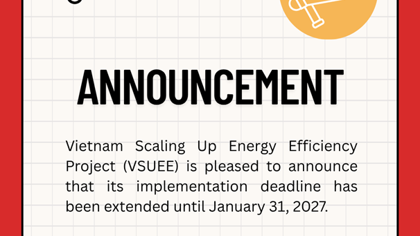 The Vietnam Scaling Up Energy Efficiency Project (VSUEE) is pleased to announce that its implementation deadline has been extended until January 31, 2027.